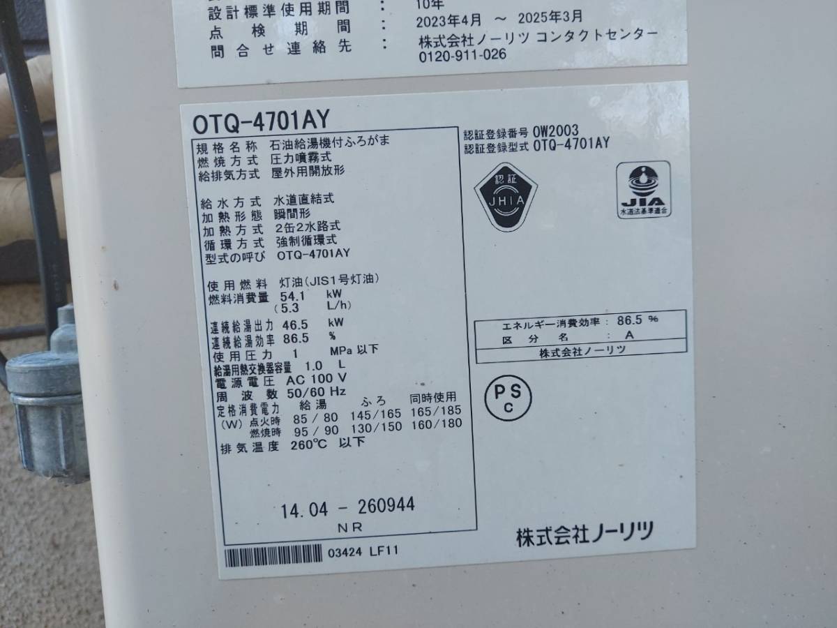 • ノーリツ 石油給湯器